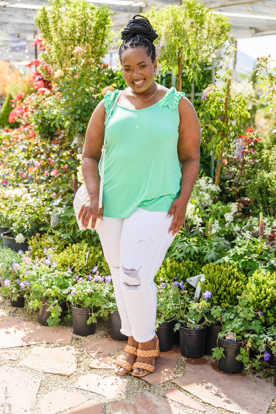 Make your look as cute as you are with the Cherry Girl Tank In Green! Featuring a stretchy, lightweight fabric, a subtle v-neckline, rounded hem, and sleeveless cut with unique ruffled detail. Pair this perfect summer top with cut-offs and sandals for a chic look!